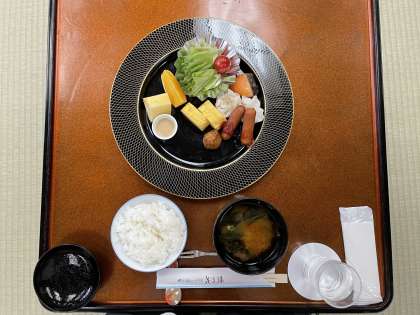 今から朝食を頂きます!夕食と同様に、全員一方向を向いて静かに食べています。