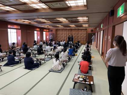 今から朝食を頂きます!夕食と同様に、全員一方向を向いて静かに食べています。