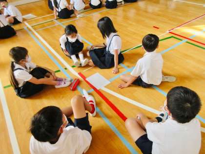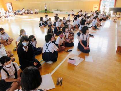 まだ全員でとはいきませんが、今日は全学年の1組で行う児童集会。ということで、たてわり班での活動も久しぶりです。