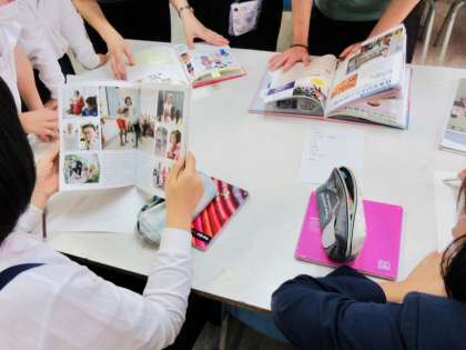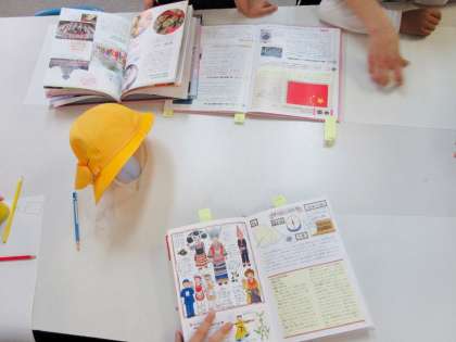 今日は、ルーツのある国の文化を、図書室にある本で調べ、用紙にまとめました。