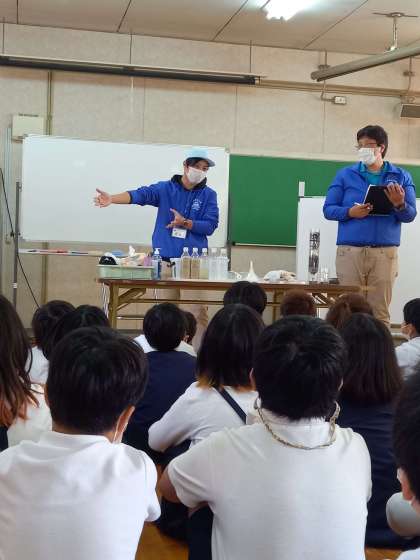 柴島浄水場より、水道水ができるまでの学習を教えに来てくださいました。