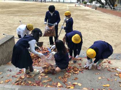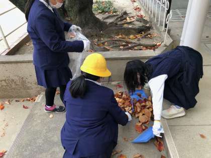今日の美化委員会は、寒くなって増えてきた落ち葉の掃除。