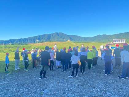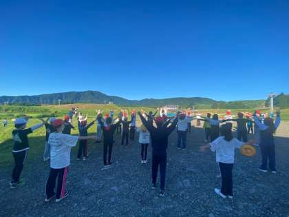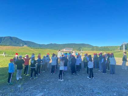 朝の集いで校長先生のお話や、ラジオ体操をしました。