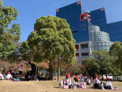 天神橋筋商店街を抜けて、扇町公園でお弁当を食べました。秋晴れのもと、滑り台はほとんど貸切状態。子どもたちは、思いっきり遊ぶことができました!