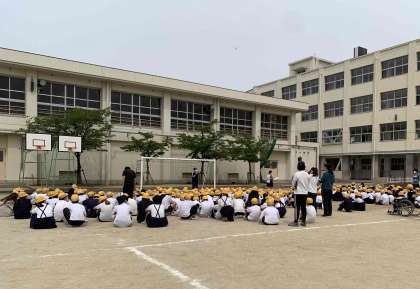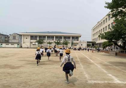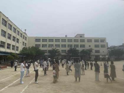 本日は、土曜授業で地震と津波を想定した引き渡し訓練を行いました。非常ベルがなり、放送による指示に従って子どもたちは、速やかに避難することができました。その後、津波から身を守るため、校舎3階へ避難しました。