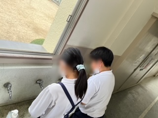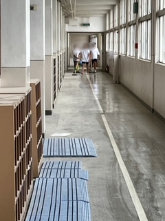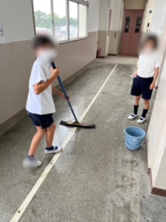 学校の廊下や階段を、モップやぞうきんを使い清掃しました。普段取り切れないこぼれた牛乳やおかずの汁の跡も取れ、ぴかぴかになりました。