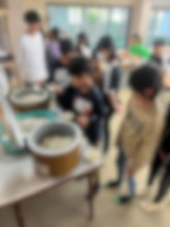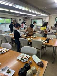 今朝も、食事係の人たちが一足先に集まり、準備をしています。