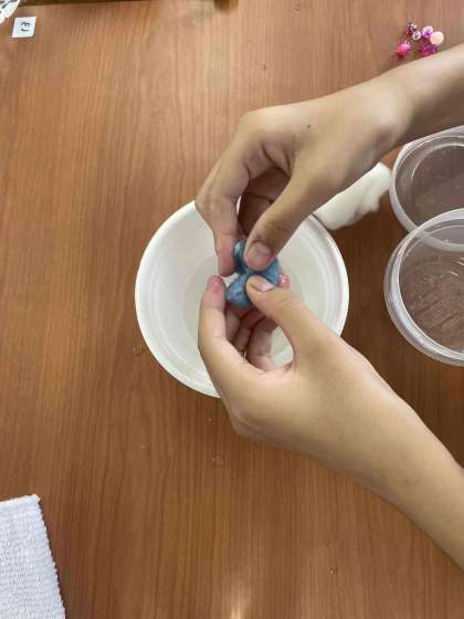 羊毛を水につけて、コロコロ転がして形を作ります。