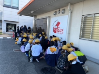 大きなチョコのオブジェやカールおじさんのオブジェに迎えられ、ワクワクが止まらない子どもたちです。