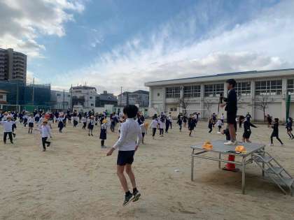 今日からなわとび週間が始まりました。音楽に合わせて、前とびや後ろとび、あやとびや二重とびなど、いろいろなとび方に挑戦しました。運動委員会のみなさんが前で見本を見せてくていました。今週は、少し寒くなりそうですが、最後までがんばりましょう!!
