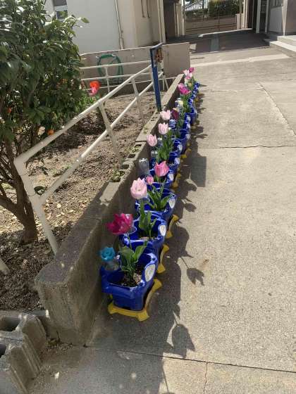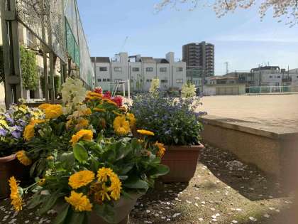 今年の春は、少し遅くなったせいか、桜がまだ咲いています。その他にも学校には色とりどりの花が咲いています。みなさん、学校の中の春をぜひ探してみてください。