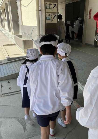 給食が始まってから金曜日までの4日間、5年1組が1年生のサポートとして、給食を教室まで一緒に運んでくれました。1年生を優しくサポートする5年生の姿は、とても頼もしく感じられました。5年1組のみなさんありがとうございました!来週は5年2組のみなさんです。よろしくお願いします!