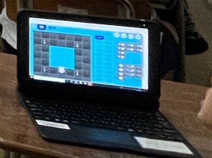 そのあと、タブレットで「アルゴロジック」というキャラクターを動かして旗をとるプログラミング学習用ツールを使って、トライアンドエラーを繰り返しながら楽しく学習しました。