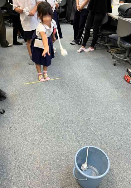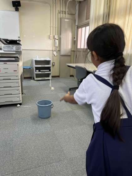 先日、2学期初めてのワールドサークルがありました。今回は、「投壺(トゥホ)」という中国に古くから伝わる遊びをしました。ストローと紙を使って道具を手作りし、壺に見立てたバケツに投げて遊びました。はじめは難しそうに思えましたが、子どもたちは、すぐにコツをつかむと次々にバケツに投げ入れることができるようになりました。