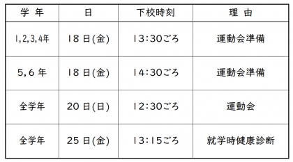 10月の下校時刻変更のお知らせです。ご確認ください。