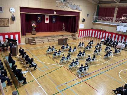 本日、令和7年度の入学式が行われました。桜の花も満開を迎える中、天候にも恵まれ、新しく35名の新入生を迎えることができました。子どもたちは、少し緊張しながらも校長先生のお話を静かにしっかりと聞くことができました。入場や退場の時に見せる子どもたちの笑顔が会場をあったかい雰囲気にしてくれました。保護者の皆様、本日は、お子様のご入学、本当におめでとうございます。