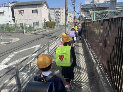 下校は、はぐれないようしっかりと前のお友だちについて歩いています!