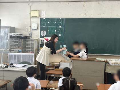 生活科で、1年生に学校案内をしました。どんな場所を紹介したいか、教えてあげたいことは何かなど、2年生としてできることを考えました。案内看板をイラスト入りで作り、1年生に紹介しながら歩きました。「1年生と友だちになれた」「困ったたことがあったら教えてあげたい」など、2年生も楽しめたようです。最後に、自分たちで育てたアサガオの花からとれた種をプレゼントしました。