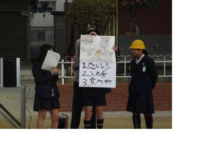 阪神淡路大震災のときにお年寄りが、家財道具よりも先に「入れ歯」を持ち出したというエピソードが出ると、子どもたちからは驚きの声が挙がりました。