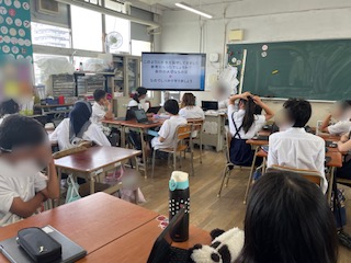 「いざというときのために」という単元の学習で災害が起きたときにどうすればいいか、それぞれが選んだ災害について、調べて対策や大切なことをタブレットでまとめて発表し合いました。
