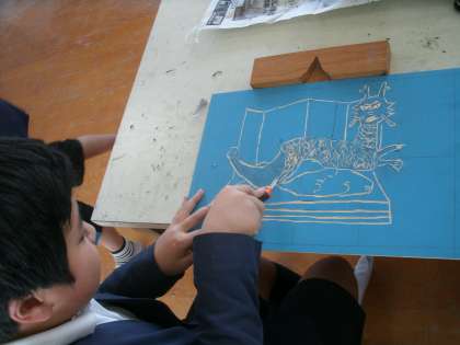 さて、図工の学習では、「私の好きな干支」というテーマで、木版画をしました。彫刻刀を上手に使って、細かいところまで表現することができていて、(さすが6年生だなあ。)と感心しました。