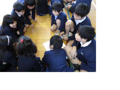 全学年から聞き取ったことを基に作られたクイズでは、解答用紙が先に配られ、新聞掲示委員が出題する問題に順に答えていきます。たて割り班で相談する場面では、下の学年の子に、どの答えがいいかを聞く高学年の姿が印象的でした。