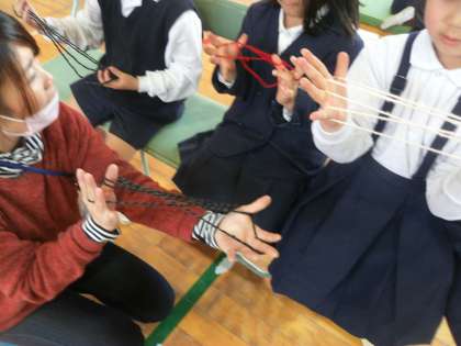 2月24日(水)、1年生では地域の方々をお招きし、昔遊びの会を行いました。