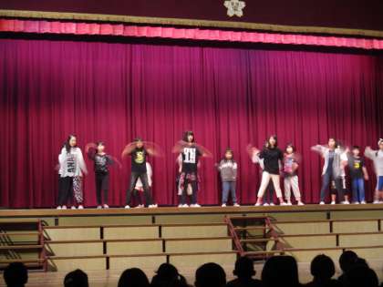 3月3日(木)の児童集会では、音楽クラブとダンスクラブによるクラブ発表会が行われました。