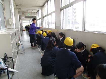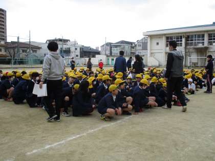 3月11日は、地震・津波発生時における避難訓練を行いました。1次避難として、地震発生時に運動場に集合する訓練をし、その後、2次避難として津波発生時に校舎の3階以上に避難する訓練を行いました。前回よりも素早く集合することができていました。
