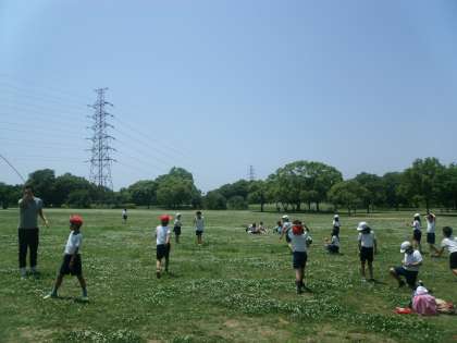 お昼は運動場よりも広い大きな芝生でお弁当を食べ、その後は鬼ごっこや大縄などで元気に仲よく遊びました!