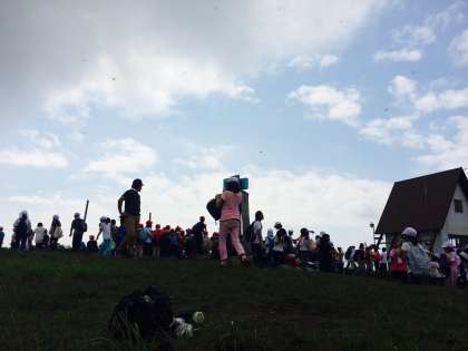 山頂でビリーブを熱唱し、お昼のカレーの材料、お肉カードをゲット!