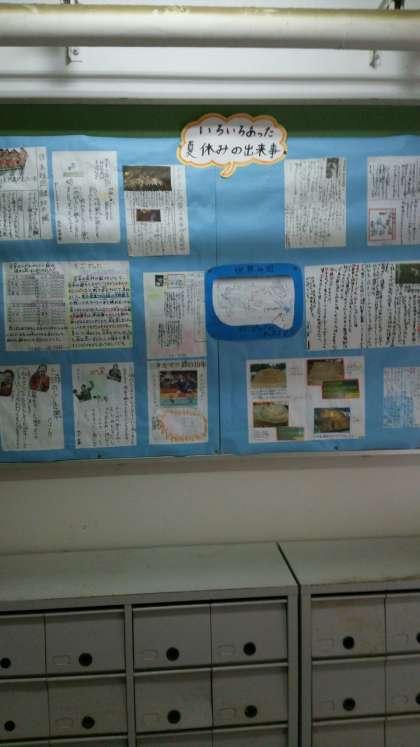 事務室前には新聞掲示委員会が作成した「いろいろあった夏休みの出来事」が貼り出されています。(面白い内容なのでぜひ見てください!)