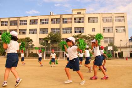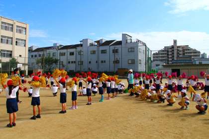 ついに、本番用のポンポンを持って、運動場で踊りました!