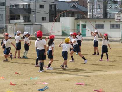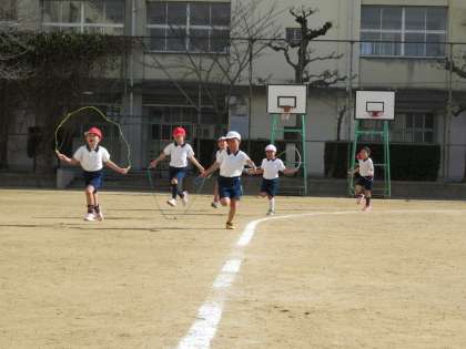 体育の時間には、なわとびをがんばっています。2重とびができるようになった子も、少しずつ増えてきました。長縄は、連続で跳べるように挑戦中です。子ども達は、友達のよいところをたくさん見つけることができていて、体育の終わりには、回し方名人、跳び方名人、応援名人をたくさん教えてくれました^^