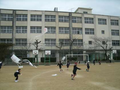 1月20日金曜日に凧上げをしました。子どもたちが自分で作った凧なので、みんなあげる前からとても楽しみにしていました。
