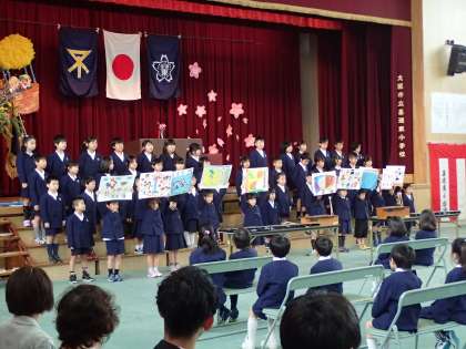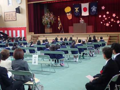 入学式では新2年生の子どもたちが、小学校生活を分かりやすく発表しました。