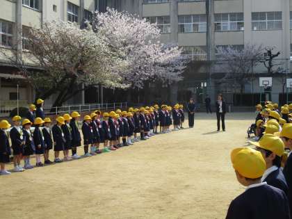 1年生と6年生の児童数がほぼいっしょということもあり、いい感でペアができ、スムーズな入退場ができました。