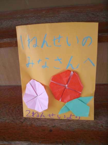 最後に、2年生が1年生のときに育てたアサガオの種をもらい、1年生の子どもたちは、とても嬉しそうでした。