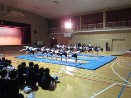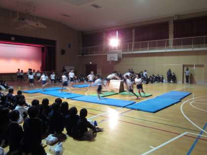 2月28日(金)は、児童集会で器械体操クラブが、一年間の活動の成果を発表しました。「金メダル級」の大技に、思わず感嘆の声があがる会場内でした。