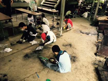 林間学習、焼き板作り