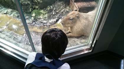 「めっちゃかわいいやん!」「先生、俺に似てない!?」カピバラに子どもたちは大興奮です♪
