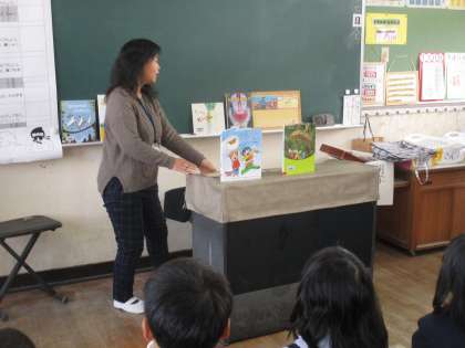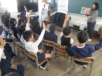 平野図書館の「おはなしたからばこ」のスタッフの方々をお招きして、11月17日に1・2・3年生が、11月29日に4・5・6年生が、おはなしの会を実施しました。