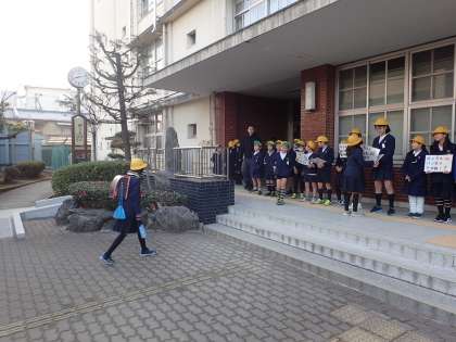 1月15日(月)から1月19日(金)に代表委員会の児童と一緒に、1年生と4年生が校門であいさつ運動を実施しました。