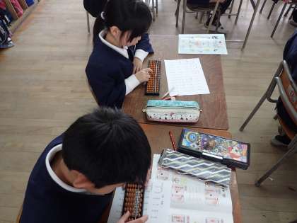 初めてそろばんを触った児童も多く、最初は戸惑いを見せていましたが、終盤はたし算・ひき算ができるようになっていました。