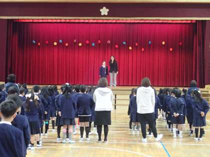 ・4年児童の表彰のあとに2年1組の転入生の紹介がありました。