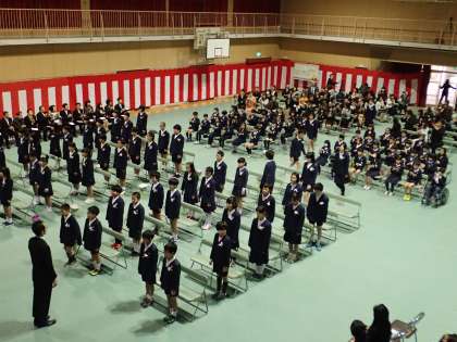 主役の卒業生が入場した後、国歌・大阪市歌を斉唱しました。
