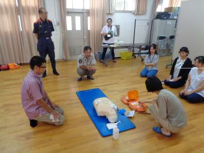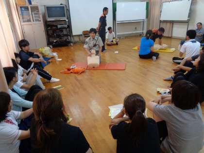 例年行っている普通救命講習ですが、今回は一連の講習を終えた後、想定訓練がありました。署員さんから与えられる限られた情報を元にして具体的な行動をするというものでしたが、非常時に冷静さを保つことや的確な判断を行うことの難しさを痛感しました。