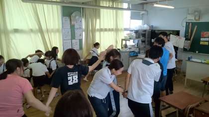 「数トンネルくぐりゲーム」では、児童チームと先生チームに分かれて、白熱した試合が繰り広げられましたが、最後は先生チームが勝ちました。
