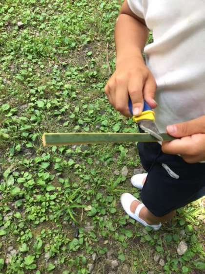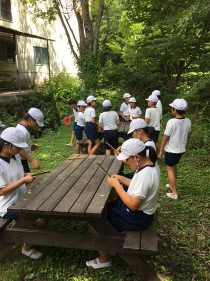 林間中使う箸作り。自分で使うものなので、一生懸命作りました。