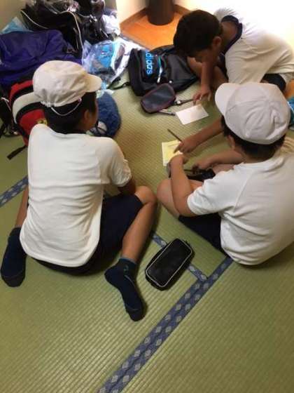 今日の思い出をハガキに書いています。 お家に届くのが楽しみですね。